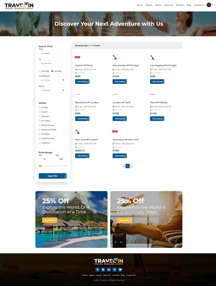 Travelin - Hotel & Air Tickets Booking Laravel Script - Travelin 脚本是让您轻松在线业务的完美解决方案