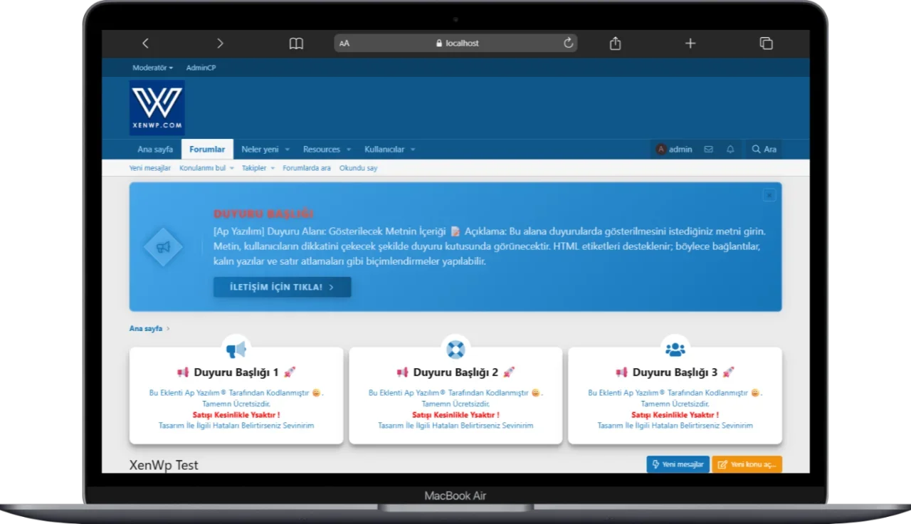 该插件支持向管理员和组织发送通知。他们可以向教师、学生或所有用户发布通知,通知会显示在用户面板上。