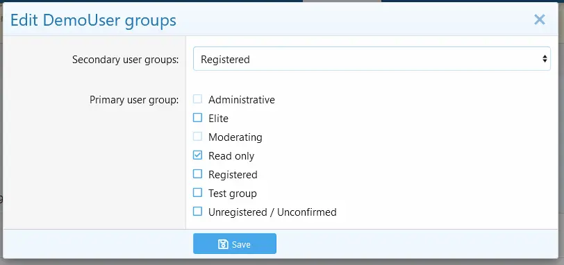 在"管理用户组"权限中,为"管理员"权限设置"是"。