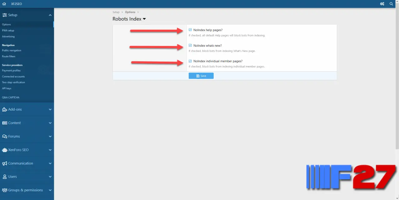将noindex 元标记添加到任何 XenForo 线程和 XenForo 创建的各种默认页面(新增功能、成员页面和帮助页面)。