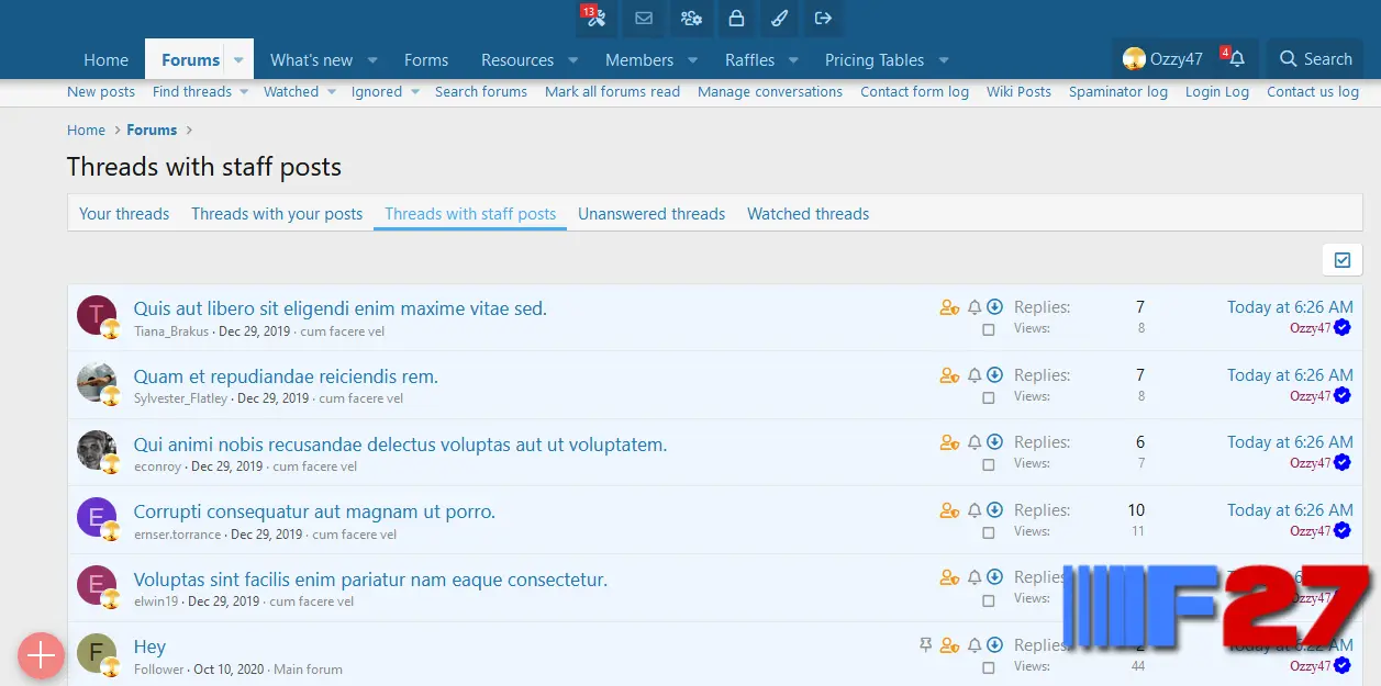 [OzzModz] Indicate Threads with Staff Replies - 包含至少一个职位的线程上添加一个图标,通过工作人员回复来更轻松地区分与员工的回复。如果第一个职位的作者是工作人员,请选择是否希望将线程算作有工作人员职位。