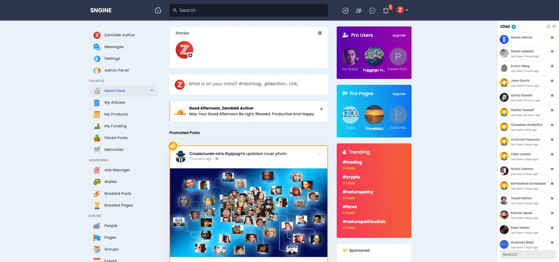 演示地址:https://demo.sngine.com/